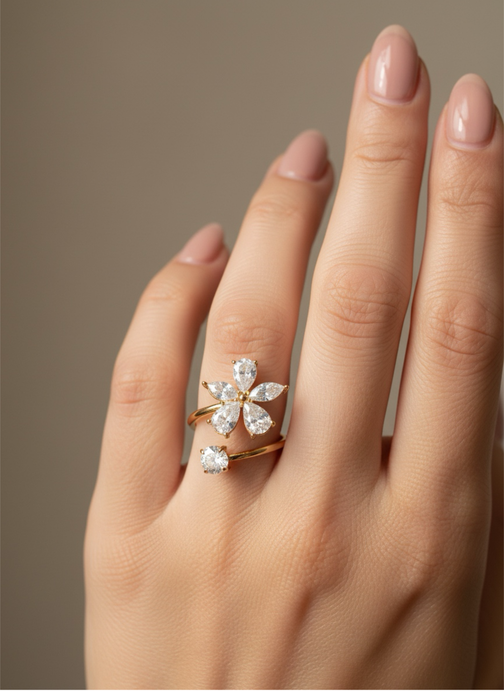 Fleur Luxe 18k Gold Plated Open Crystal Flower Ring