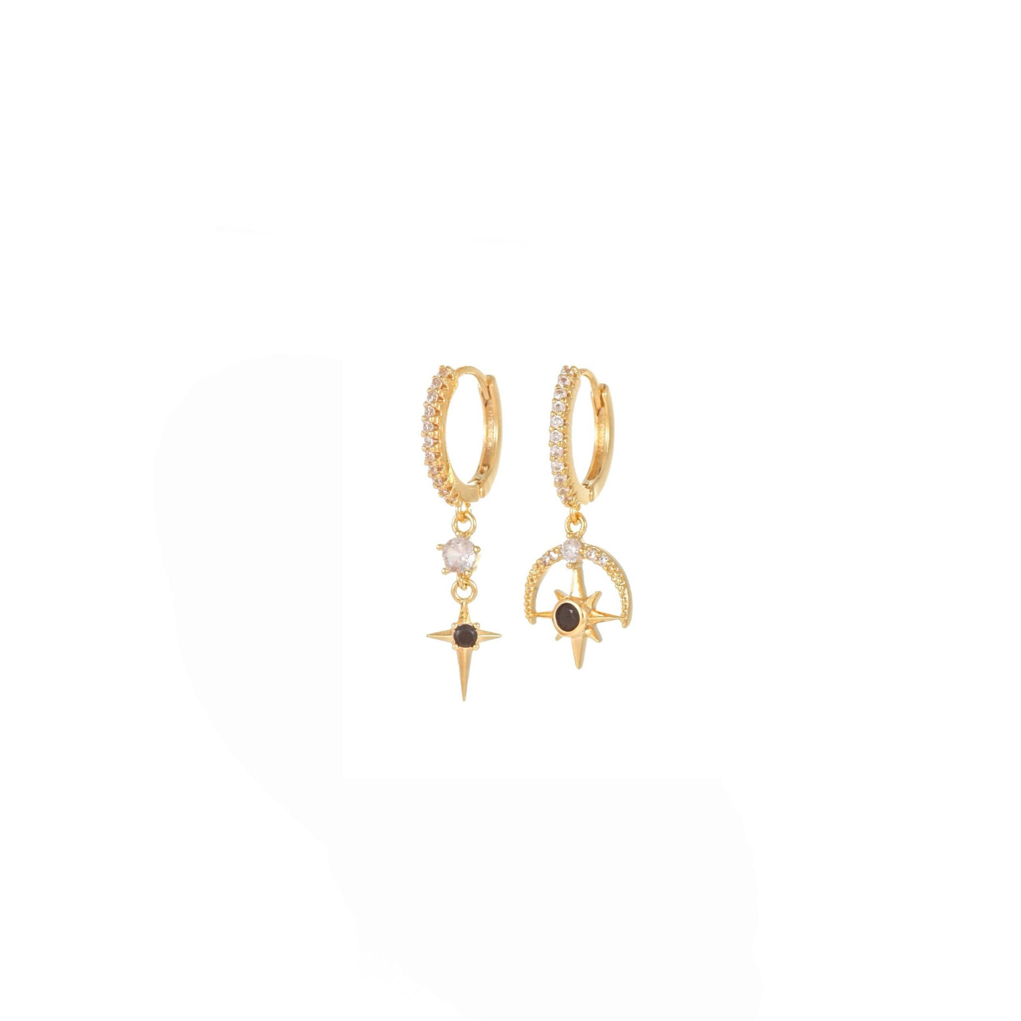 Astrid 18k Gold Plated Mini Star and Moon Huggie Earrings