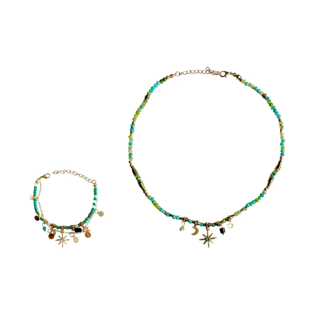 The Kiki Boho Seafoam Necklace & Bracelet Set