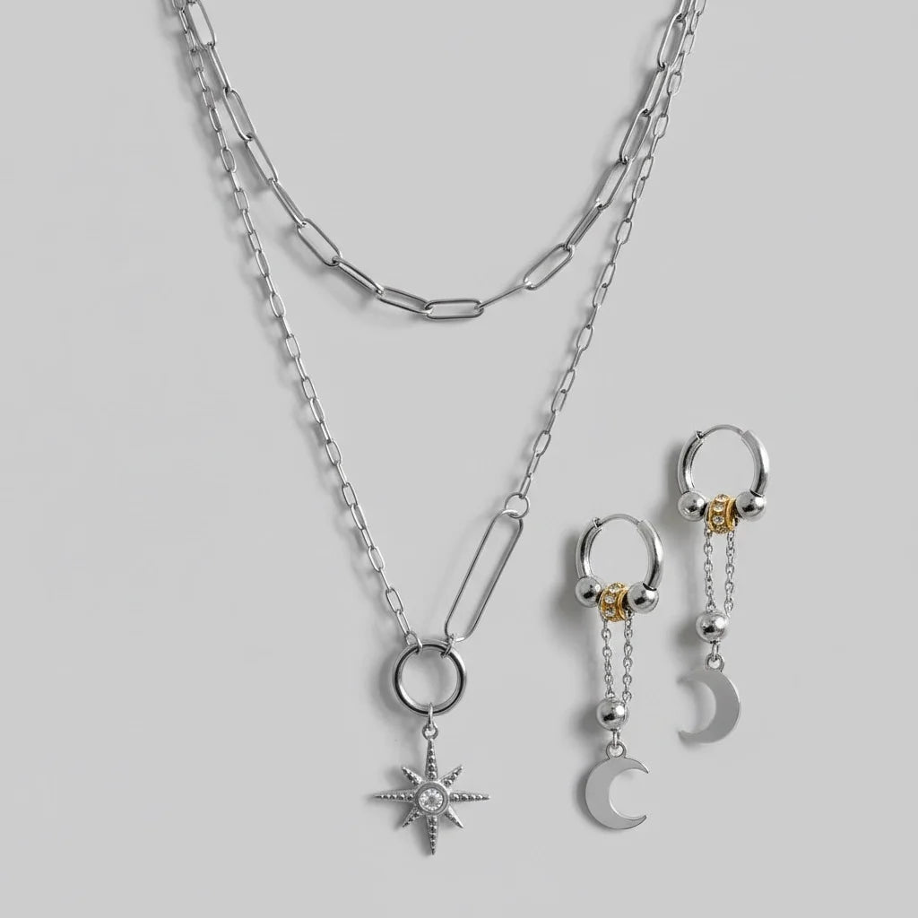 Aetheria Luxe 18k Gold Plated Crescent Moon Necklace & Bracelet Set